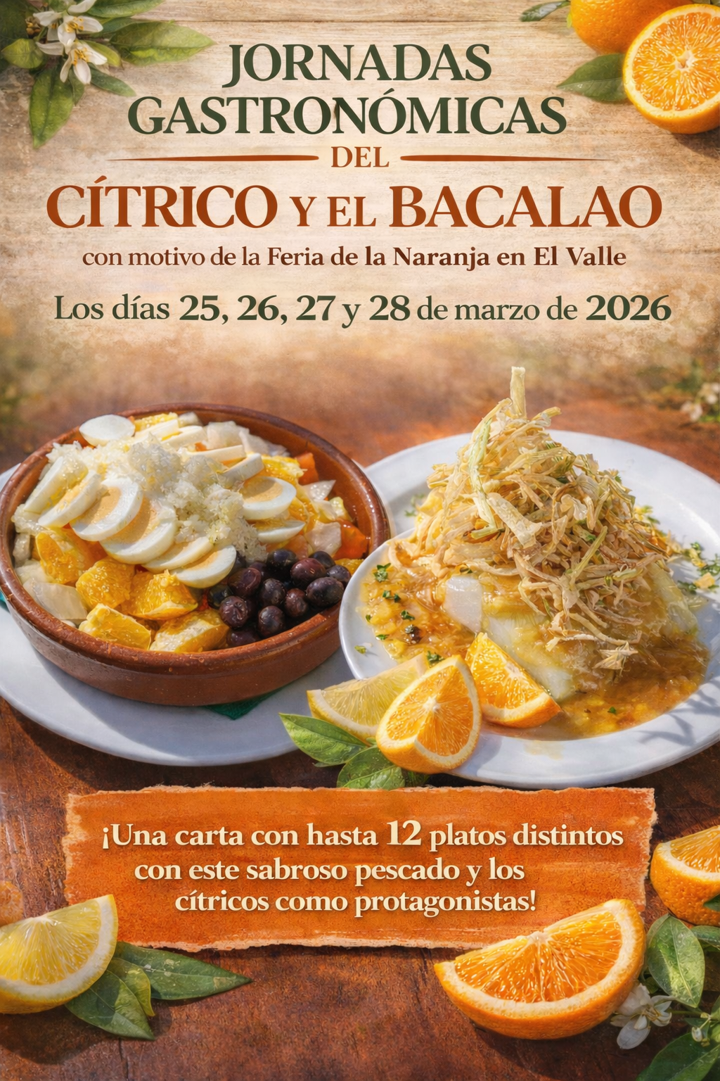 Los días 25, 26, 27 y 28 de marzo, con motivo de la Feria de la Naranja en El Valle, disfruta de una carta muy especial con hasta 12 maneras de elaborar este delicioso pescado con los cítricos como protagonistas.